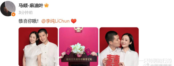如今修成正果,CP粉狂喜:“我嗑的CP结婚啦!过年都没这么开心!”还有人不忘cue马頔:“以后写歌是不是要改甜宠风了?《南山南》2.0版叫《红本红》?”